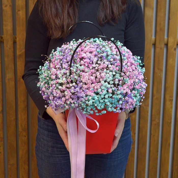 Декоративная коробка – 1 шт.гипсофила цветная – 11 шт.