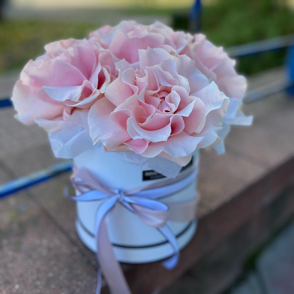 Французская роза – 5 шт. Коробка шляпная – 1 шт. Оазис флористический – 1 шт.